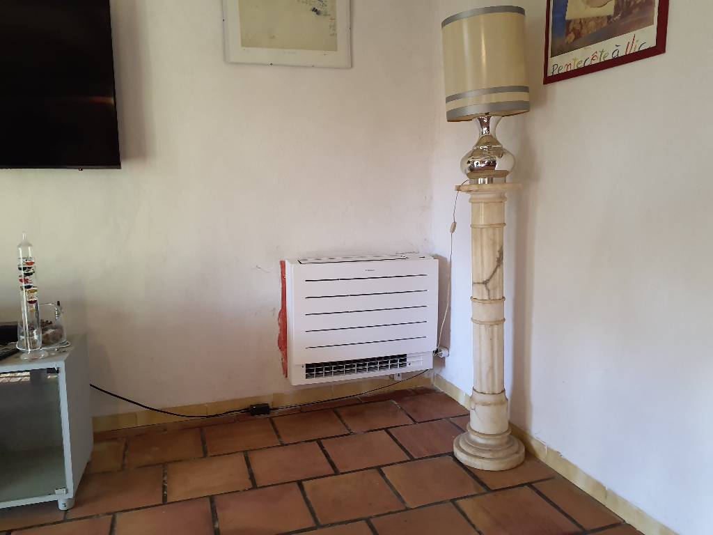 L'unité intérieure, installée dans le salon, est de type console via un support mural pour un encombrement minimal au regard des dimensions (600x700x210 ), une puissance à chaud de 5000 W à +7°C, une puissance à froid de 3800 W à +35°C, avec une classe énergétique A++.