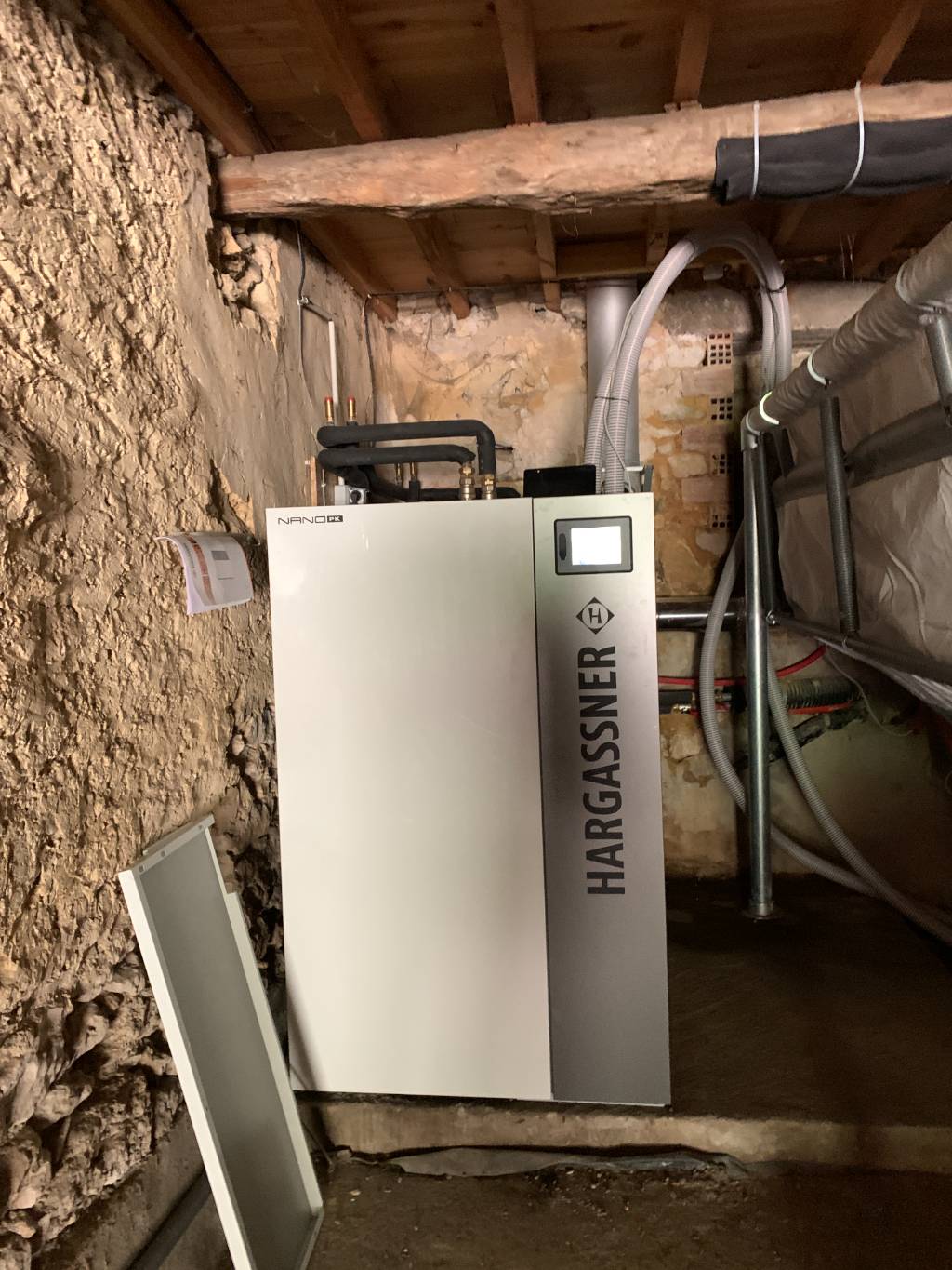 Installation d'une chaudière à granulés de bois Hargassner NANOPK25 chauffage seul en remplacement de l'ancienne chaudière