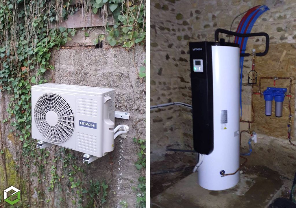 - L’installation du modèle HITACHI Yutampo II TAW-190RHC (cuve inox 190 L) et du groupe extérieur RAC-35RHC au R32,