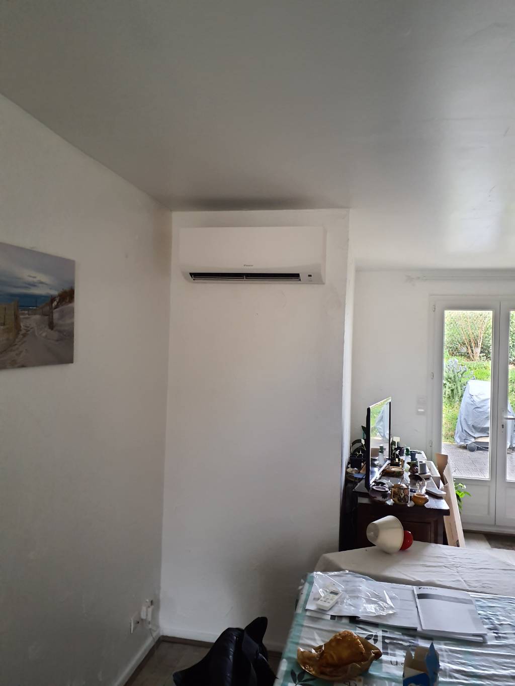 Pour offrir une température agréable toute l’année, nous avons installé une pompe à chaleur Air/Air Daikin FTXF42 – gamme SENSIRA dans un salon de 90 m³.
